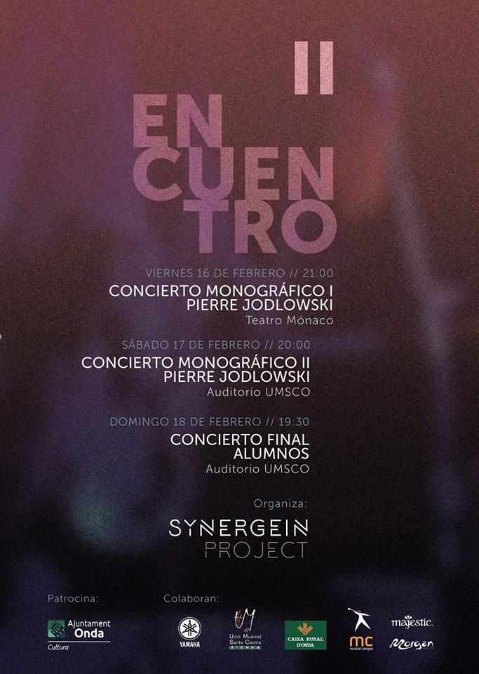 17 de Febrero en el marco de la academia internacional de percusión Synergein project, monográfico dedicado al compositor Pierre Jodloswki. Serie Blanche & Serie Bleue. + info