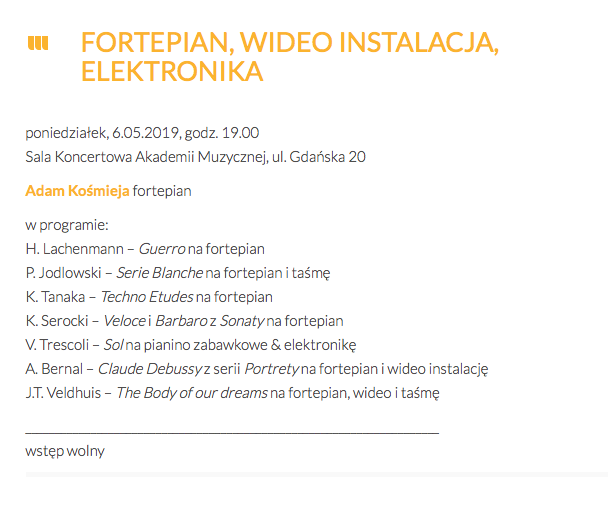 Lugar: Auditorio del CIE Fecha: 6 de febrero de 2025 Intérpretes: Víctor Trescolí (toy piano y electrónica) Obras: Víctor Trescolí, Bernat Cucarella Sifre y Carlos D. Perales
