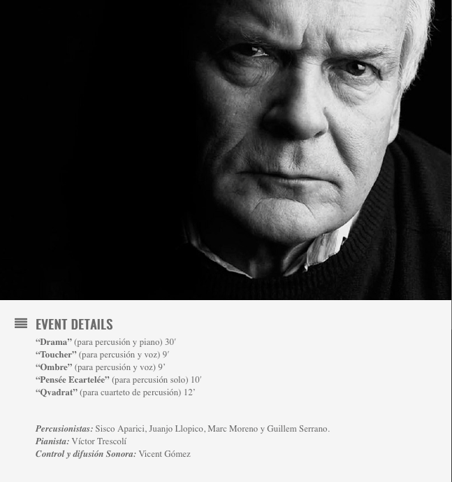 El intercanvi amb grups professionals de l’Estat Espanyol, la promoció de joves intèrprets, així com la involucració dels estudiants que actualment se formen en els Conservatoris de la nostra comunitat, aporten una programació on present i futur conviuen amb el propòsit d’oferir al públic de València el panorama més actual i atractiu de la percussió contemporània. Tot al llarg del 2017 es celebrarà la VI Edició del PERCUTE, V Concurs Internacional de Música de Cambra per a Percussió, III Concurs Internacional de Caja Solo y II Concurso Nacional de Caja Solo Junior, que tindrà lloc els dies 2, 3 i 4 de Novembre 2017 en el TAC de Catarroja (València).