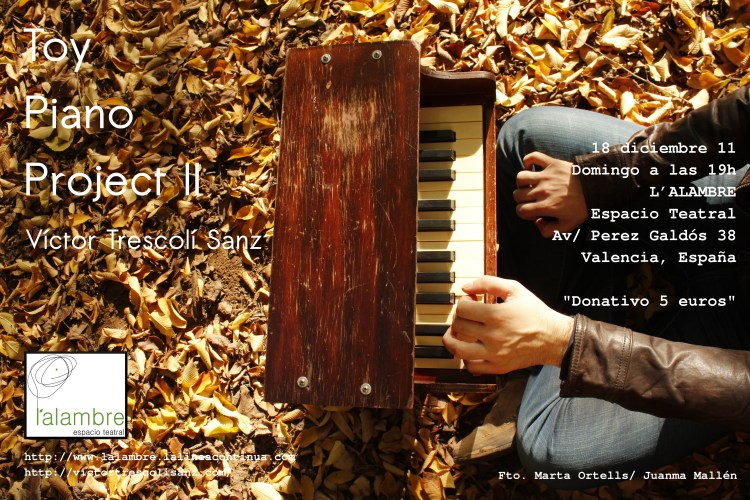 Víctor Trescolí Sanz (L´Alcúdia 1982), es un músico que desarrolla su actividad como pianista tanto en España como en el extranjero. Su interés en la música fluye desde el repertorio más clásico hasta las propuestas más actuales. Colabora con numerosas agrupaciones y es fundador de otras como el Dúo Torres- Trescolí, Art! Trio y Grup Mixtour. Un buen día, Víctor se encuentra con el Toy piano (piano de juguete) con el que empieza a experimentar nuevas sonoridades que le transportan a un mundo de miniaturas. De aquí surge la propuesta de colaborar con el compositor austríaco Karlheinz Essl e interpretar sus obras para Toy piano y electrónica, donde el sonido se transforma, se deforma y se moldea en vivo.